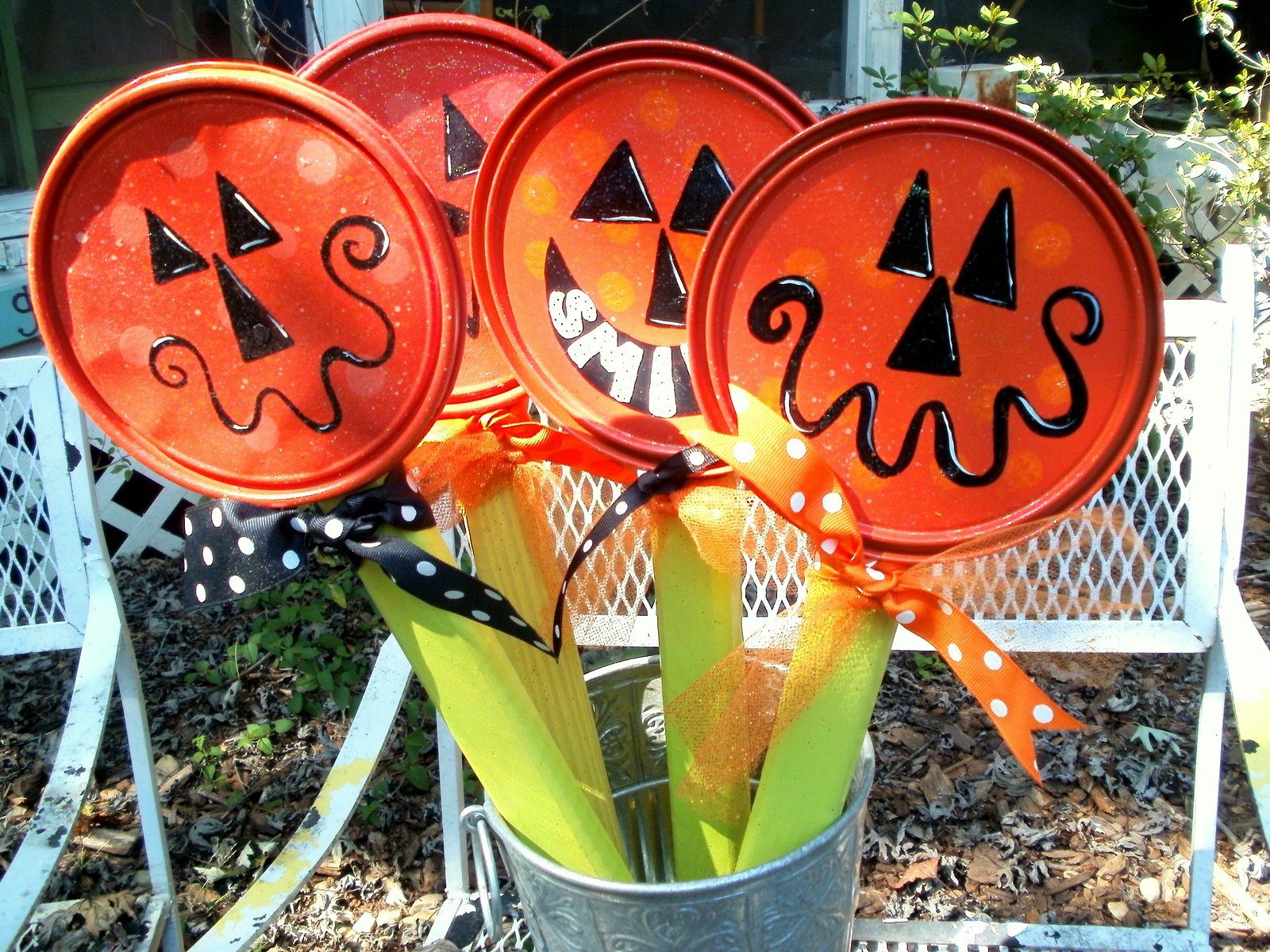 I bought plastic pumpkins for a dollar.
